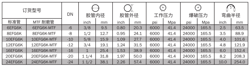 超耐磨外膠層 MTF(MegaTuff):適用于頻繁摩擦的工況且無(wú)需使用彈簧或尼龍護(hù)套,耐臭氧、紫外