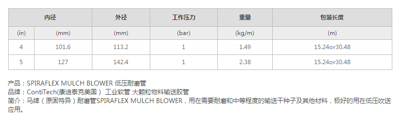 用途:用在需要耐磨和中等程度的輸送干種子及其他材料,用在低壓吹送應用。