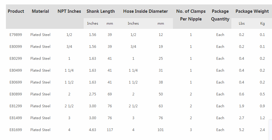 內膠:NITRILE(丁腈)為基膠的高耐油性的合成橡膠。外膠:以乙烯基丁腈為基膠的合成橡膠CHEMIVIC,具有高耐油性。增強層:一層鋼絲編織層。溫度:-40℉~140℉(-40℃~60℃)內徑外徑包裝重量inmminmmpcb/boxKg/m3/419.051.1328.7060.677/822.231.2531.7560.73僅提供組裝好含接頭的總成產品