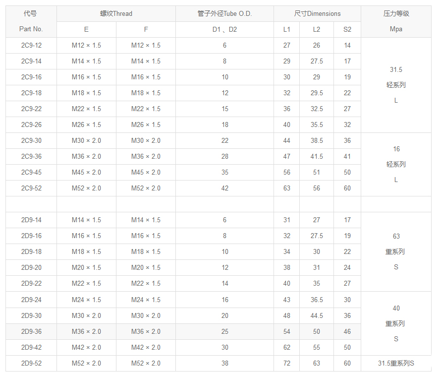 10511公制外螺紋24°內(nèi)錐重系列