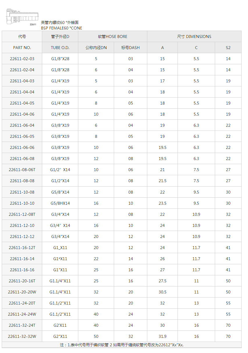 英管內螺紋60°外錐面22611系列