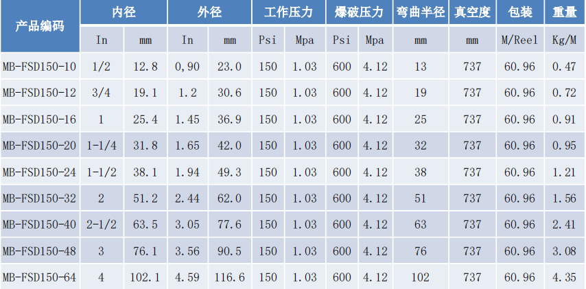 增強層:一層高強度合成纖維編織層,特殊的編織角度使得軟管具備高耐曲繞性,并對接頭有*強的抱緊度,不必再使用卡箍緊固。